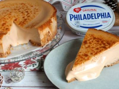 Tarta cremosa de queso Philadelphia con dulce de leche