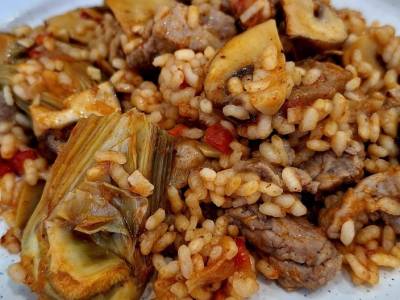 Costillas de cerdo asadas con miel y salsa de cebolla caramelizada