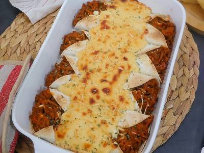 Empanada de pollo con champiñones y pisto