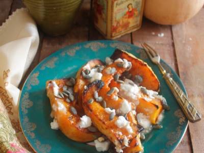 Calabaza asada con queso de cabra
