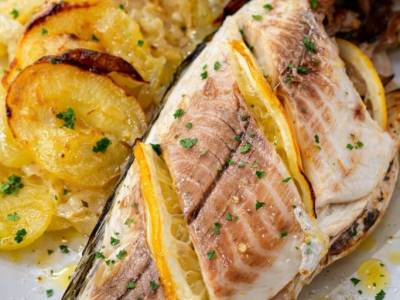 Dorada al horno con patatas panadera