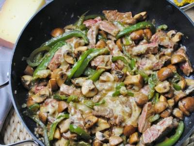 Lomo de cerdo salteado con pimientos y espaguetis al estilo asiático