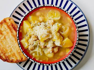 Sopa de pollo con verduras y arroz (videoreceta)