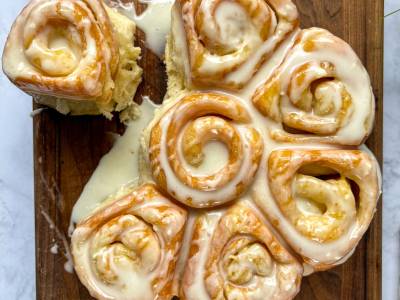 Rollos de limón esponjosos con glaseado de queso crema (lemon rolls)