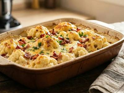 Coliflor al horno con bechamel y bacon hecha en mambo
