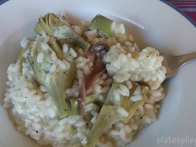 Arroz de galeras, sepia y alcachofas