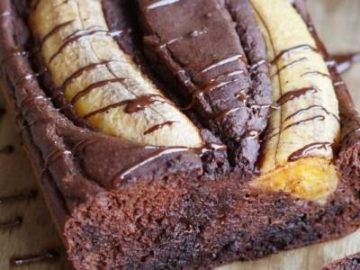 Bizcocho de chocolate y plátano al revés (videoreceta)
