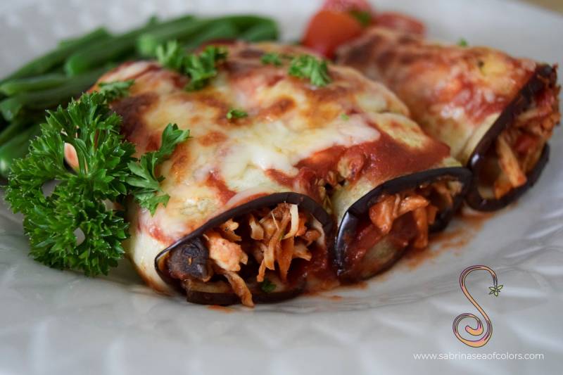 Canelones de berenjena con pollo Receta de Sabrina's Sea of Colors Ver receta completa ¡Comparte esta receta! Comparte Tuitea Comparte Pinea WhatsApp