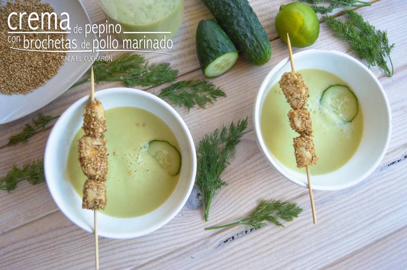 Crema de pepino con brochetas de pollo marinado Receta de Saca el Cucharón Ver receta completa ¡Comparte esta receta! Comparte Tuitea Comparte Pinea WhatsApp