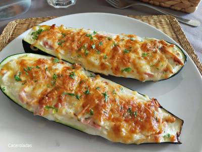 Calabacines rellenos de queso crema y jamón - receta en airfryer o para horno