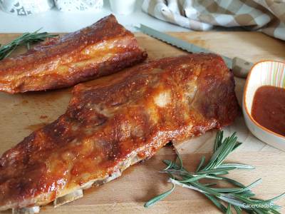Costillas al horno con salsa barbacoa y miel (sabrosas y muy tiernas)