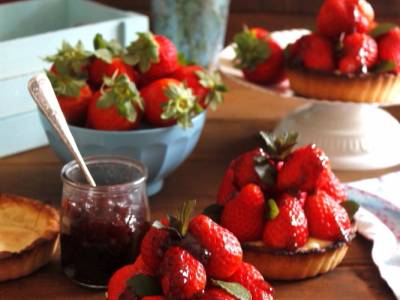 Tartaletas de crema y fresas
