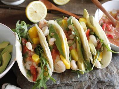 Tacos de gambas y mango