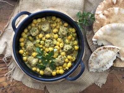 Curry de garbanzos con butifarra