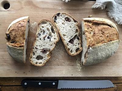 Pan con aceitunas de kalamata y aceite de romero