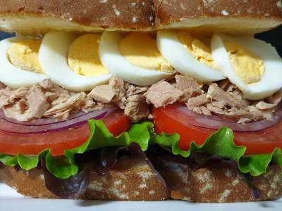 Sándwich vegetal con atún y huevo