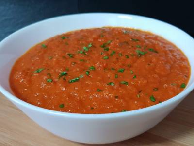 Brandada de bacalao con salsa de piquillos y mermelada de naranja