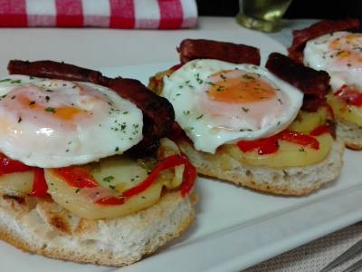 Parmentier de patata con pimiento asado y crumble de anchoas