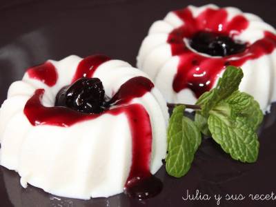 Pannacotta de chocolate blanco con coulis de melocotón o frambuesas