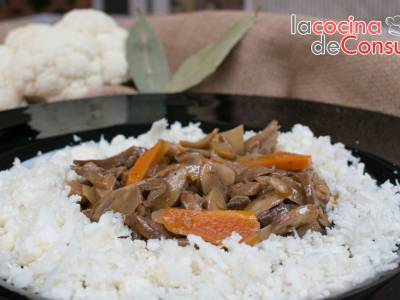 Setas en escabeche con cous cous de coliflor