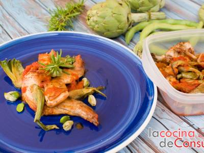 Fritada de conejo con habas y alcachofas