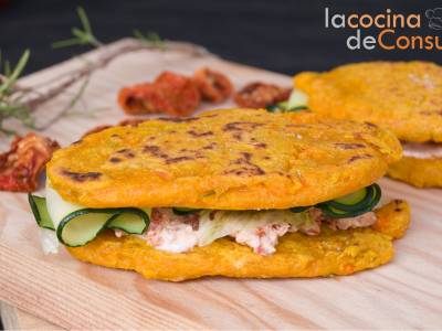 Bocadillo de pan de zanahoria con calabacín y tomates secos