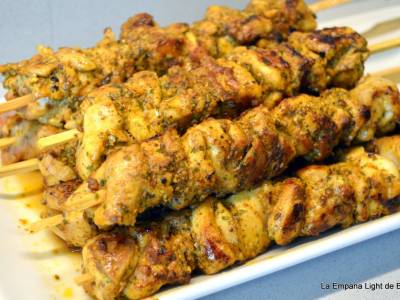 Pichos morunos caseros. receta fácil de brochetas de pollo y especias al gusto. trucos para marinar.