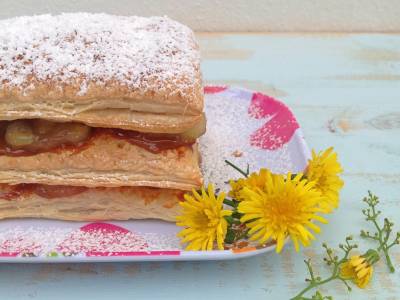 Milhojas de plátano caramelizado