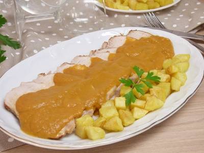 Lomo de cerdo al horno con salsa tierno y jugoso
