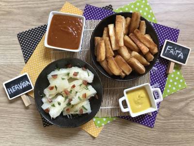Yuca hervida y yuca frita con salsa bbq casera (con vídeoreceta). reto alfabeto salado