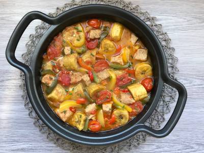 Curry amarillo thai de verduras y gambas (con vídeoreceta). reto alfabeto salado