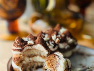 Tiramisú de crema de chocolate blanco