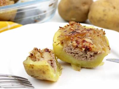 Patatas rellenas de carne con cebolla caramelizada en thermomix