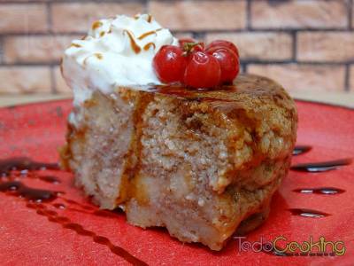 Tostada francesa o french toast con coulis de cerezas. sin lactosa