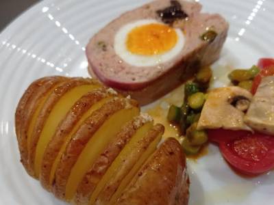 Rollo de picada de ave con patatas hasselback "cocina con pilar"