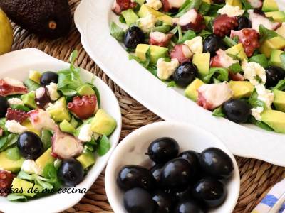 Ensalada de jamón y queso fresco con encurtidos y orejones