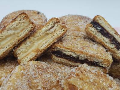 Galletas rellenas cubiertas con chocolate