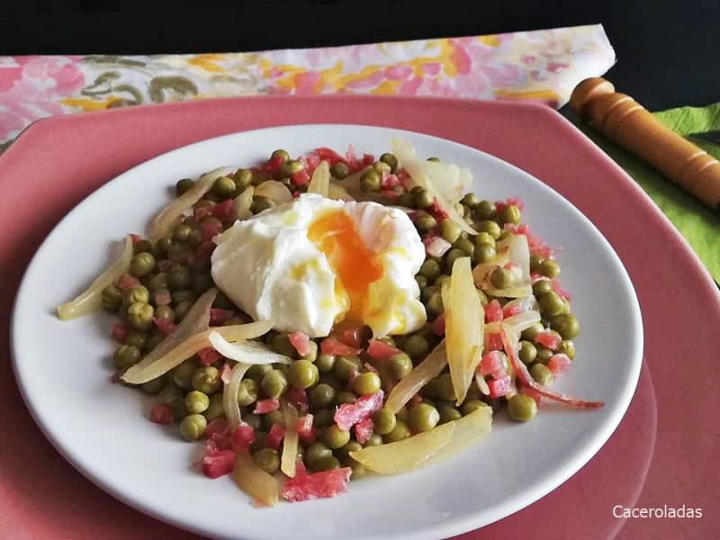 Guisantes salteados con jamón, cebolla y huevo poché Receta de Caceroladas Ver receta completa ¡Comparte esta receta! Comparte Tuitea Comparte Pinea WhatsApp