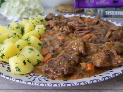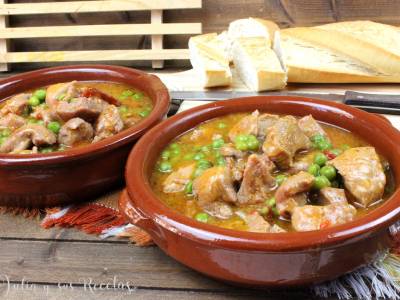 Guiso de ternera con patatas y guisantes, receta casera muy fácil