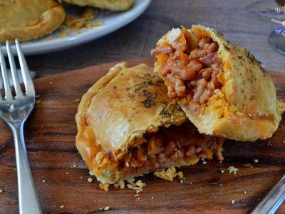 Trenza de hojaldre con morcilla y pimientos del piquillo