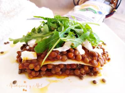 Lasaña de lentejas y mozzarella