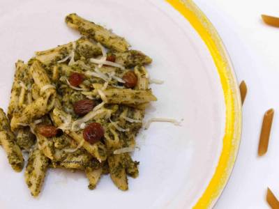 Spaghetti con alcachofas y pesto de espinacas y nueces