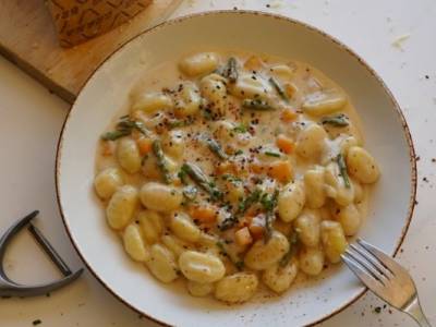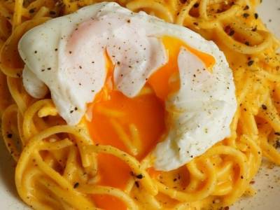Espaguetis con rebozuelos en salsa de alioli con nata