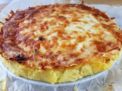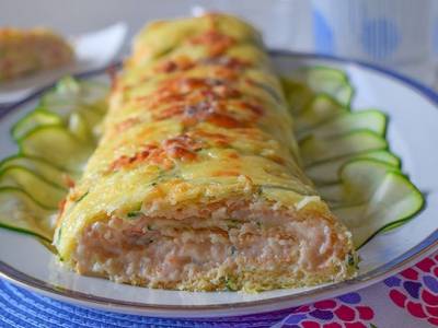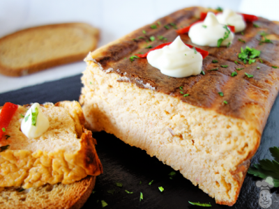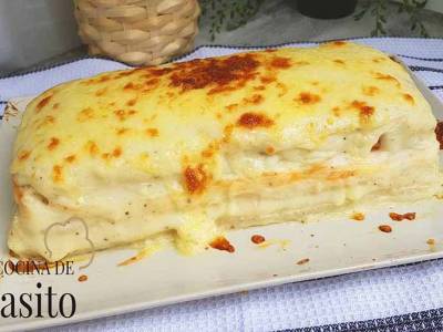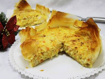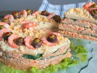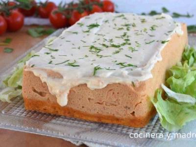 Pastel de marisco con pan de molde, cangrejo y langostinos