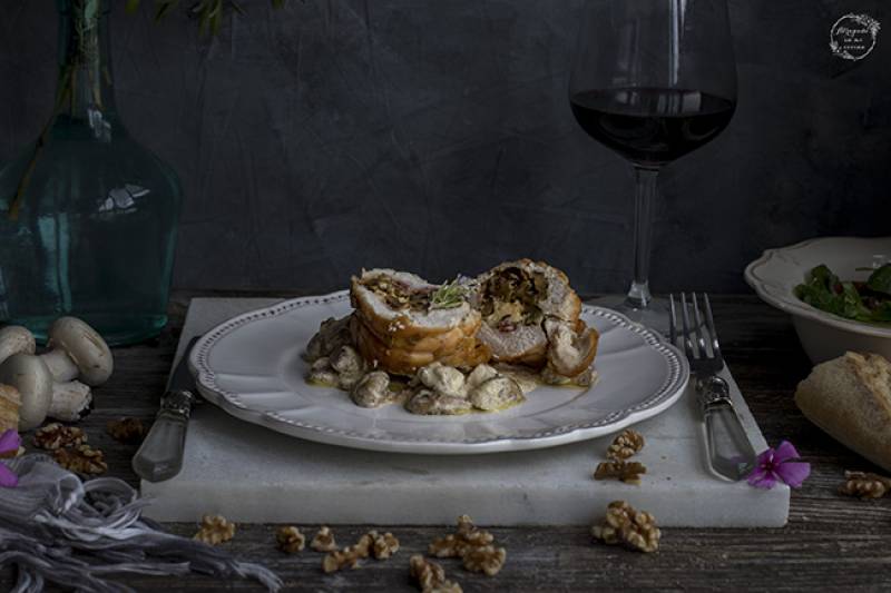 Pechuga de pavo rellena de queso azul, bacon y nueces con salsa de champiñones y vino blanco Receta de Atrapada en mi cocina Ver receta completa ¡Comparte esta receta! Comparte Tuitea Comparte Pinea WhatsApp