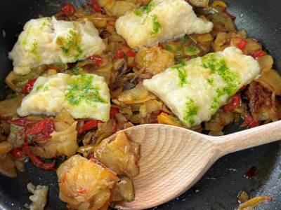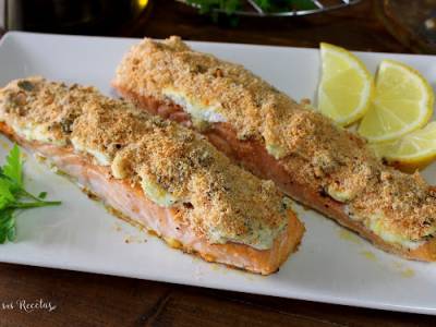 Receta de lomos de salmón rellenos con guarnición de patatas aromatizadas