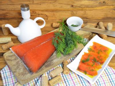 Salmón con costra de spekulatius sobre carpaccio de manzana y scarmorza con mahonesa a la mejorana (idea navidad)