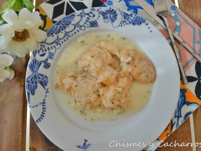 Merluza al cava con almejas y langostinos