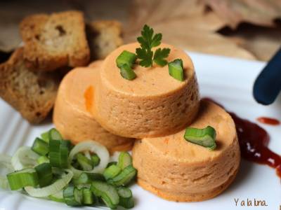 Timbal de merluza y patata con ali oli de piquillos