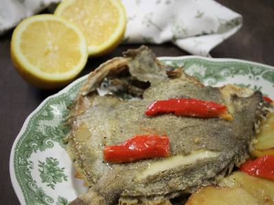 Gallo al horno con guarnición de patatas